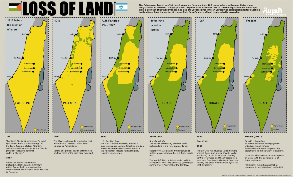 With the rise of antisemitism in Europe and the holocaust, which resulted in the mass persecution of 6 million Jews throughout Europe, and naturally, Jews who fled needed a new home. My bad, they needed a new home-land. And so they sought refuge in Mandatory Palestine. The series of events that followed is the darkest in Palestinian history. The Nakba, or the catastrophe in Arabic, saw the brutal displacement and ethnic cleansing of the native Palestinians. Palestinian Arabs were massacred on a large scale (such as the Deir Yassin massacre), and Arab towns were renamed in Hebrew and repopulated with Jews.